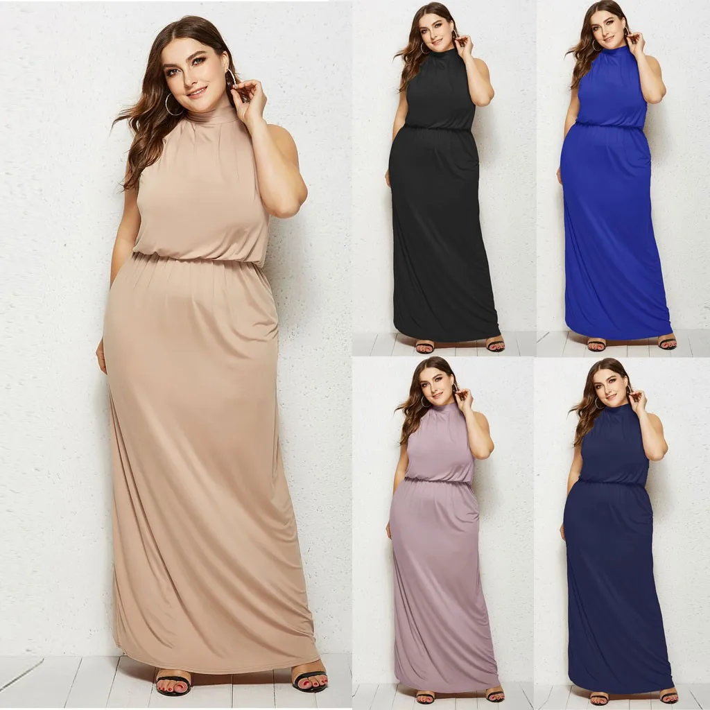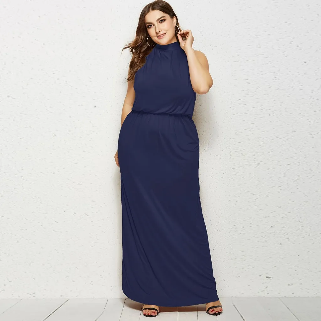 Женское сексуальное вечернее платье без рукавов с круглым вырезом большого размера
