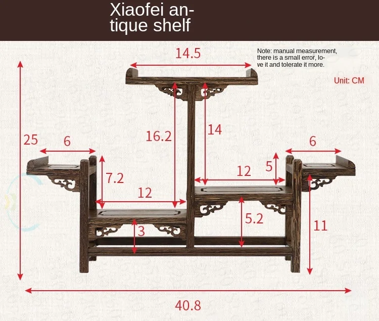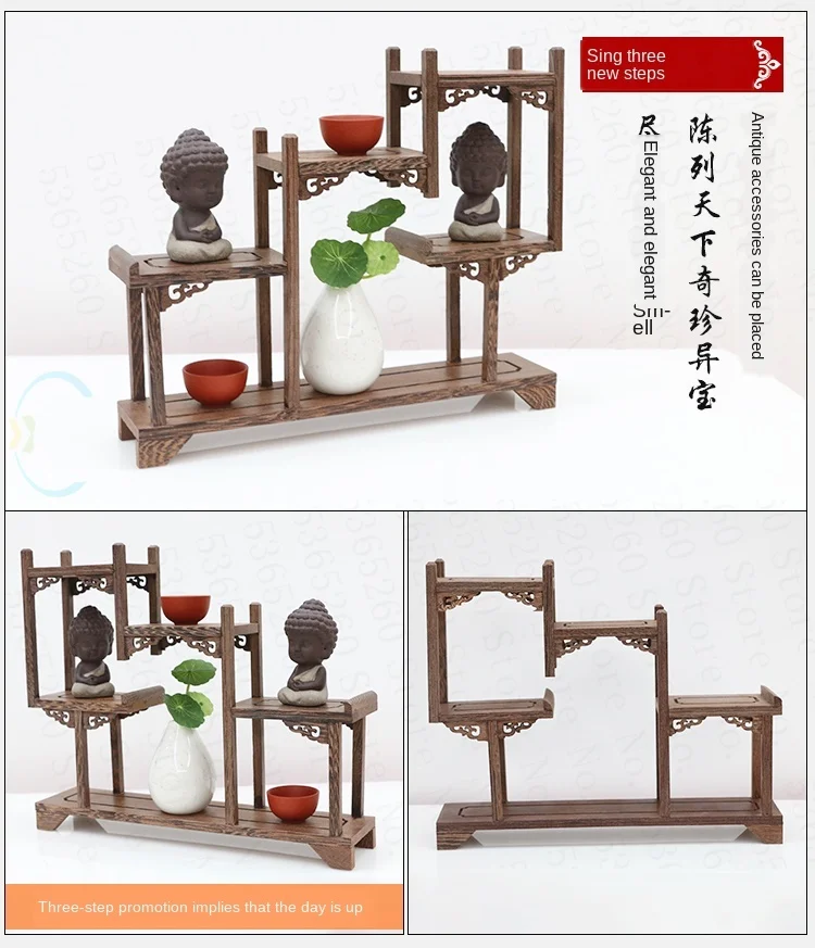 Античная полка красного дерева маленький павильон Duobao китайский мини орнамент куриные крылышки чайный набор из твердой древесины чайник и чайник