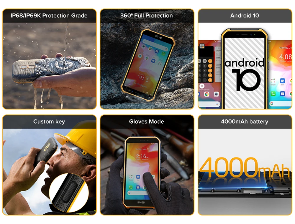 ОС: Android 10 Процессор: Helio A20 MT6761VWE Разрешение: IP68 IP69K Дисплей: 5,0-дюймовым HD монитором под управлением WIFI: 802,11 ac/a/b/g/n (2,4G/5G) Bluetooth: Bluetooth®5,0 NFC: Да Задняя камера: 13 МП F/2. Аккумулятор: 4000 мАч Характеристики: датчик ускорения, p-сенсор, l-сенсор, электронный компас, датчик отпечатков пальцев