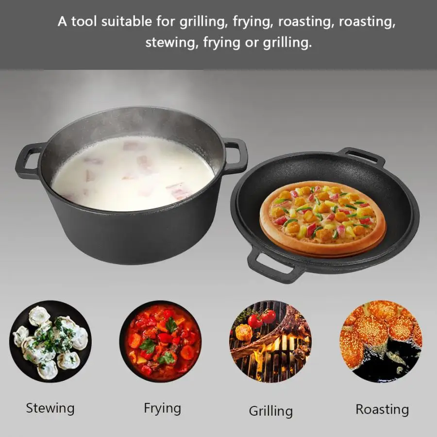 2 в 1 приправленный чугун двойная голландская печь комбо плита