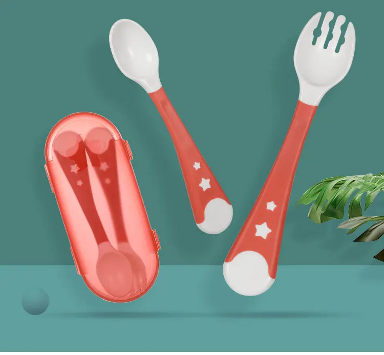 2 шт. Гибкая бутылочка для кормления ребенка набор ложка и вилка для детей ясельного возраста Еда обучающая Посуда Столовые приборы силиконовые детские столовые приборы с ящик для хранения
