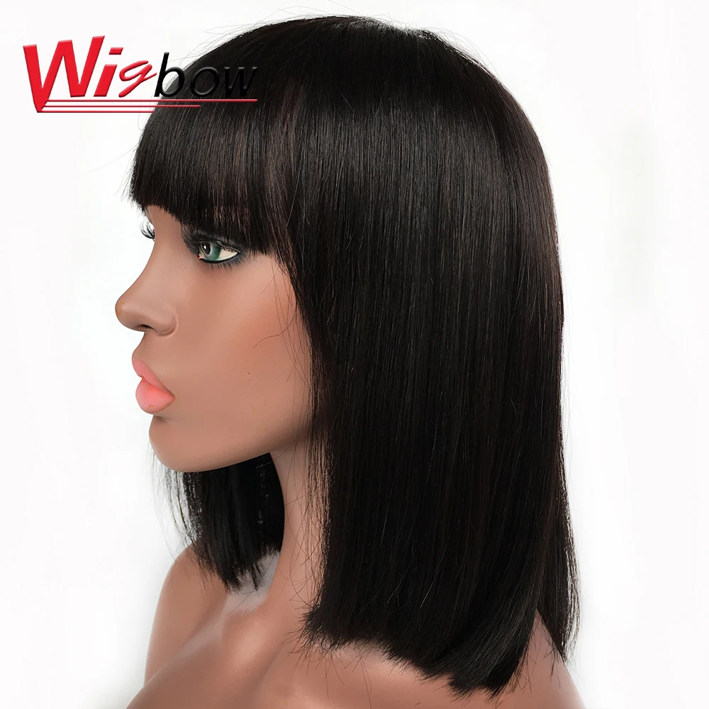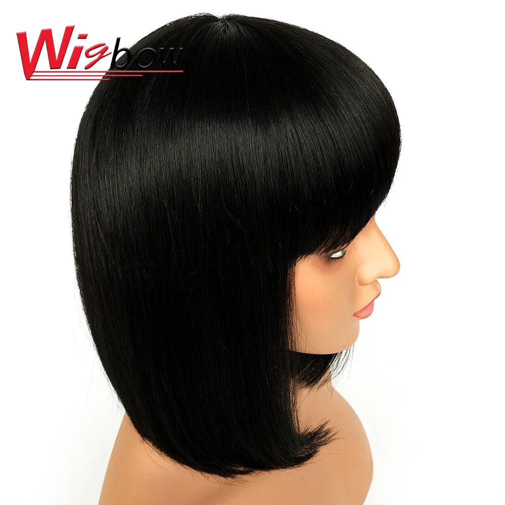 12 дюймов 100% человеческие волосы 1b цвет шелковистый прямой боб парик с челкой