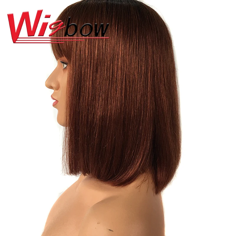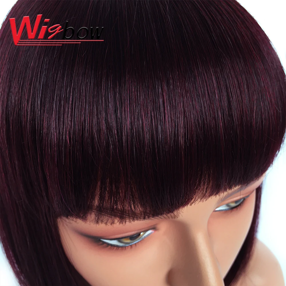 Прямые парики из человеческих волос с челкой, бразильские волосы, парики для женщин, окрашенные парики омбре