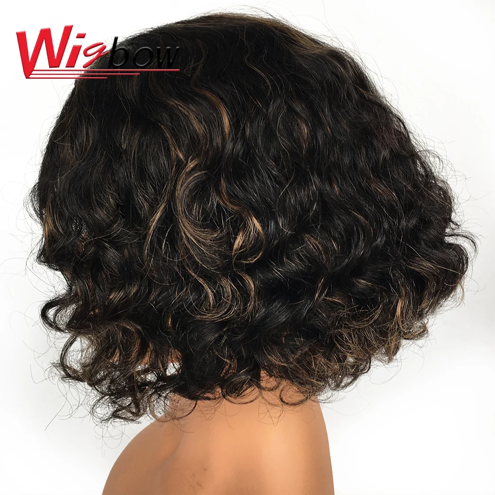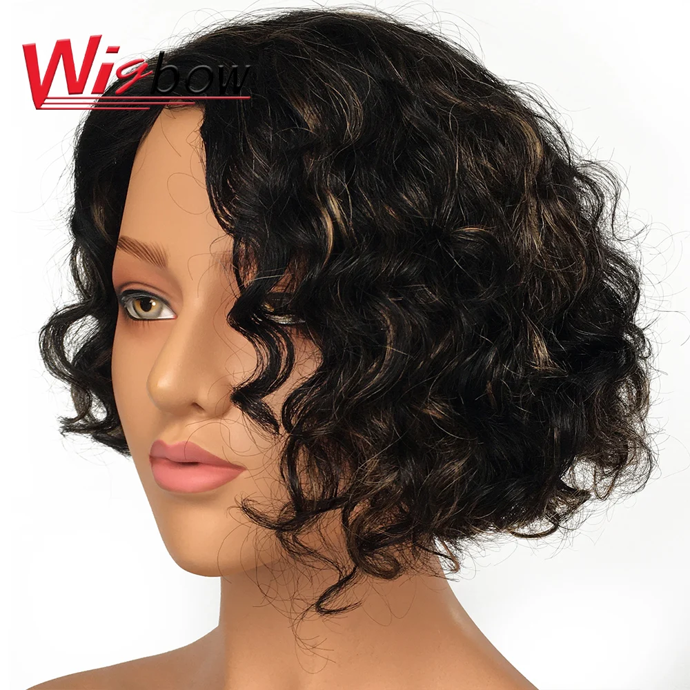 Парики из человеческих волос с волнистыми волосами для женщин 150 плотность короткие бразильские волосы Remy