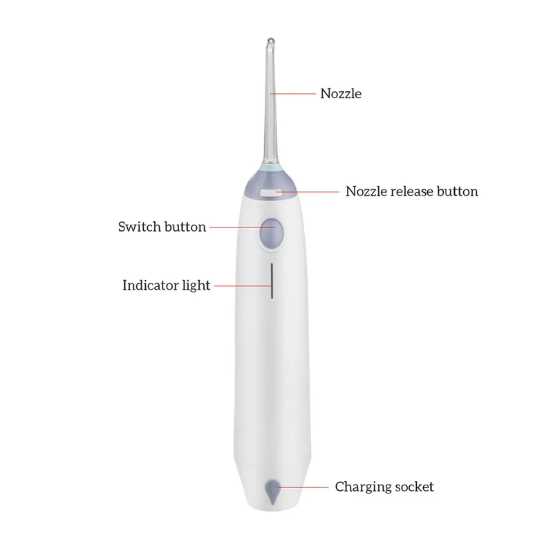 Преимущества плавания воды: 1) Удалите стоматологические язвы, остатки пищи и загрязнения, предлагая освежающий опыт. 2) Очистите мох зуба, удалите неприятное дыхание. 3) массаж и стимуляция десен для улучшения кровообращения, снятия зубной боли и защиты зубов. 4) помогает детям развивать здоровую гигиену полости рта. Применимый большого количства народа: 1) обычные люди, которые заботятся о здоровье зубов. 2) старый. Их зубы легко повредить. Водяная нить не приносит никакого вреда зубам, лучше, чем зубочистка и зубная нить. 3), детское нижнее белье с рисунками из. Это хорошее устройство для предотвращения карикатуры зубов. 4) люди, которые находятся во время ортодонтической коррекции, и с поврежденными зубами.
