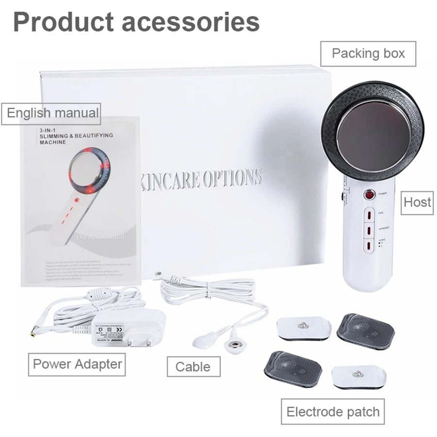 Особенности: Эффективный ультразвуковой массажер для лица и тела, для украшения. EMS кожи лица и тела для похудения и Ремом машины. Омоложение кожи инфракрасная терапия для устройства. Укрепляет текстуру кожи, защищает от морщин, подтягивает жировые области. Быстро и эффективно уменьшает и устраняет тяжелые и острые боли в спине, другие виды боли в теле. Регулируйте внутреннюю секрецию и ускорьте утомление жира, воплотите в жизнь мечты о похудении. Компактный и стильный внешний вид, удобный для переноски, простой в использовании. Для использования как на лице, так и на теле. Параметры: 1. Дальний инфракрасный свет имеет следующие функции: Комплект углеродного волокна, окружающий зонд, может генерировать Дальний инфракрасный луч с длиной волны 8-12 мкм. Он может проникать в глубокую кожу, повышать тонус кожи, активировать клетки и ускорить обмен веществ. 2. Ультразвук имеет три основные функции: Он может изменить емкость и движение каждой ячейки с точной функцией массажа, которая называется массажем ячейки. Он может стимулировать и регулировать цитомембрану, увеличить проницаемость эпидермиса, его тепловых, физические и химические эффекты могут повысить температуру в глубокой коже на 0,5-1 °C, повышает кожу, чтобы впитать эссенции, ускоряют обмен веществ и укрепляют регенеративный ход тканей. Ультразвук также может разложить отходы, окружающие жир, потреблять энергию, восстанавливать лимфы и капиллярные сосудов с функциями похудения и коррекции фигуры. 3. Микро-ток: Массаж с помощью микро тока, стимулирует мышцы с пассивным движением под током. Мышечное движение потребляет жир, сахар и углеводы окружающей ткани. При нормальном перемещении мышцы могут потреблять 60-70 joule энергии в секунду, но при высокой частоте движения мышцы могут потреблять 3000-4000 joule энергии в секунду. Посылка 1 х 1 МГц ультразвуковой массажер Адаптер питания-1 шт. Провод-1 шт. 4 x Pad 1 x Руководство пользователя