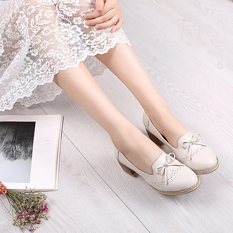 Розовые женские тонкие туфли на среднем каблуке Лоферы без шнуровки с круглым носком туфли-лодочки из натуральной кожи ручной работы; Оксфорды; Маленькие размеры 33-43