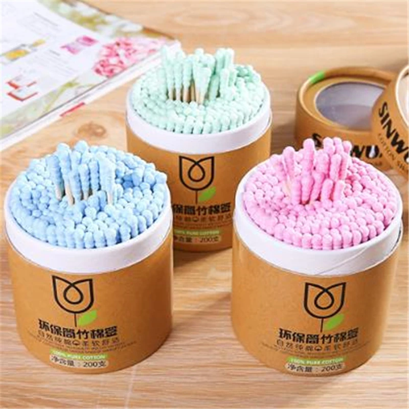 Разные цветаБольшая емкость 200 палочек, экономичная и доступная, для удовлетворения различных потребностей использования, используется для очистки ушей, удаления макияжа, нанесения пластырей и т. д., чтобы облегчить вашу жизнь.
