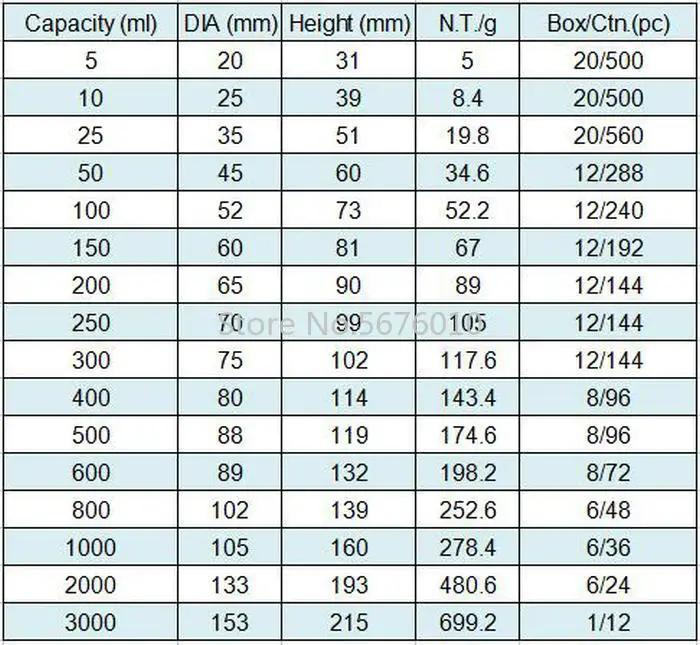 8 шт./компл. включает в себя:(25 мл/50 мл/100 мл/150 мл/200 мл/250 мл/400 мл/500 мл каждый)