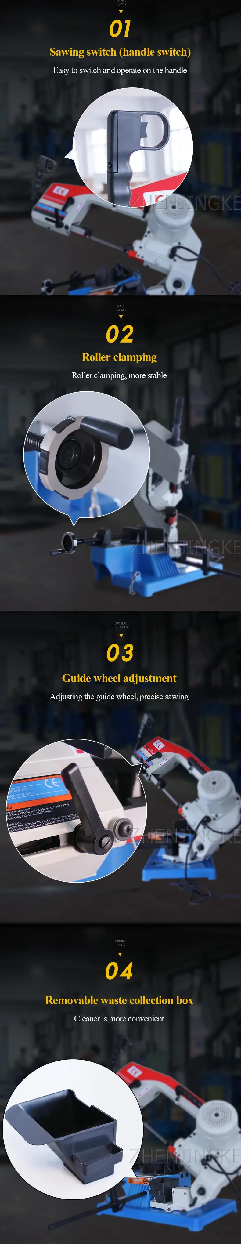 Многофункциональный небольшой Электрический пильный станок 1 * МАЛОШУМНОЕ использование более эффективно 2 * безопасная резка без искры 3 * распиловка прямая и аккуратная без черного цвета 4*0-45 градусов регулируемый угол резки 5 * пильный диск имеет долгий срок службы и низкую стоимость Категория: портативный небольшой пильный станок Мощность главного двигателя: 0,375/0,55 (кВт) Размеры: 700*290*440 (мм) Максимальный диаметр пиления: 100 (мм) Максимальный диапазон резки (мм): 90 °: круглая сталь: 100 квадратных стальных: 100 × 150 45: круглая сталь: 60 квадратных сталь: 60 × 100 Характеристики пильного полотна (мм): 13 × 0,65 × 1470 Мощность двигателя (Вт): 375 Однофазное электричество Размер продукта (мм): длина 700X ширина 290X высота 440 Посылка: длина 720X ширина 370X высота 460 Вес продукта (кг): вес нетто 26/вес брутто 29 Управление Форма: Инструкция по эксплуатации Раскладка клавиатуры: горизонтальная Установка Форма: Таблица Очень хорошо продуманный и функциональный, идеально подходит для: обычная Сфера применения: общие Цель: обычная Объект Материал: обычная