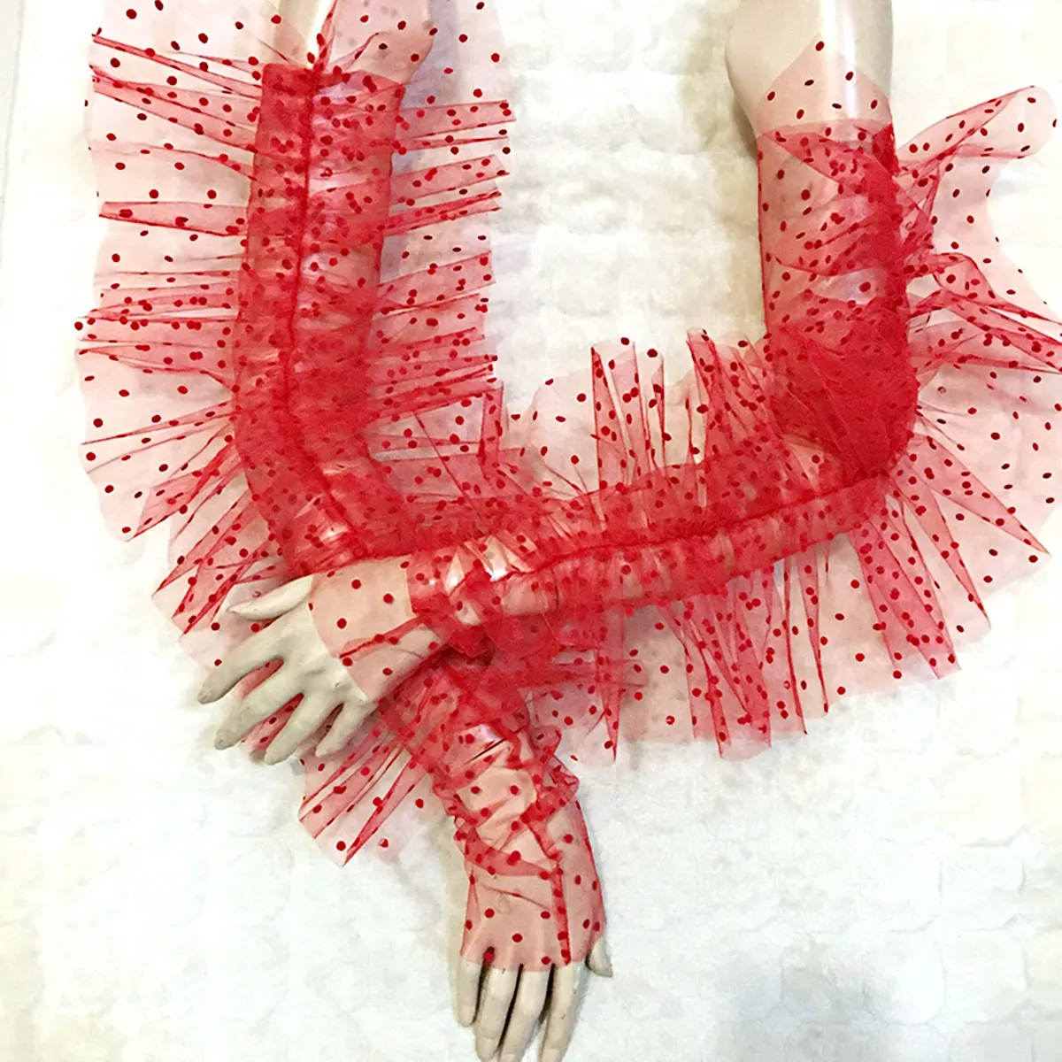 Дизайн в горошек с оборками, полная длина руки и без пальцев, определенно делает вас более очаровательным.