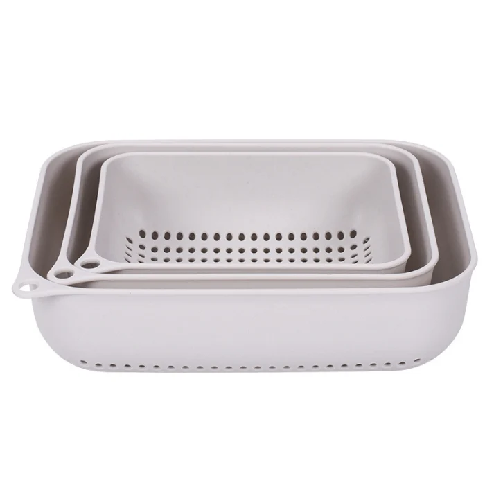 \'The Best\' 3pcs Set Plastic Colander Basket Hollow Kitchen Fruit Vegetable Strainer Tool Drain Baskets 889