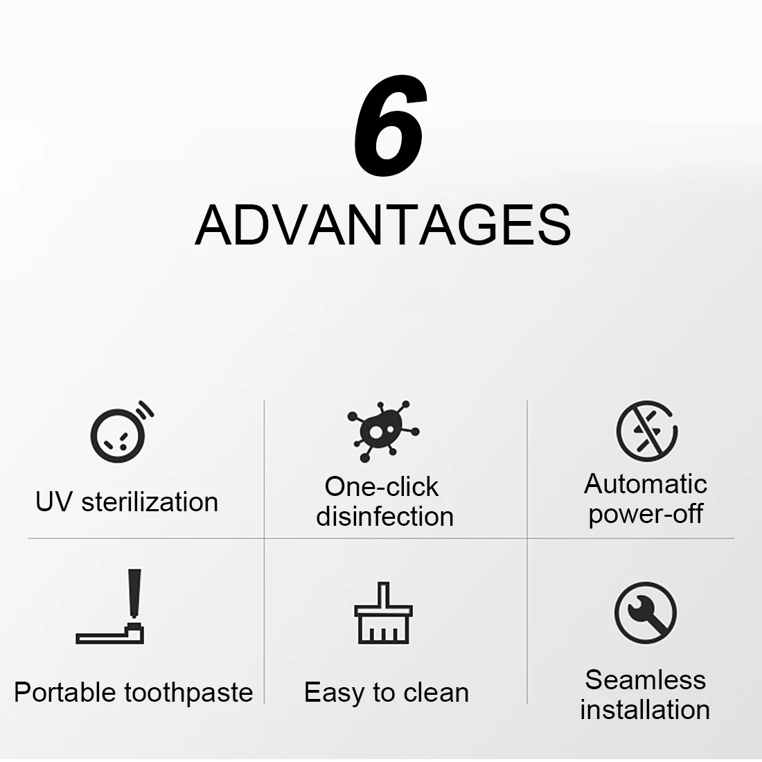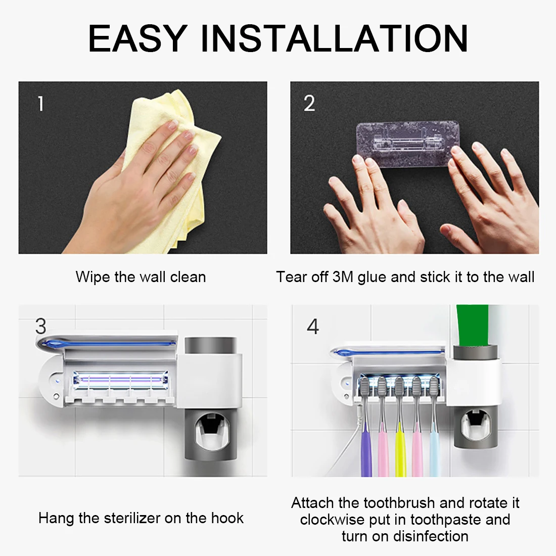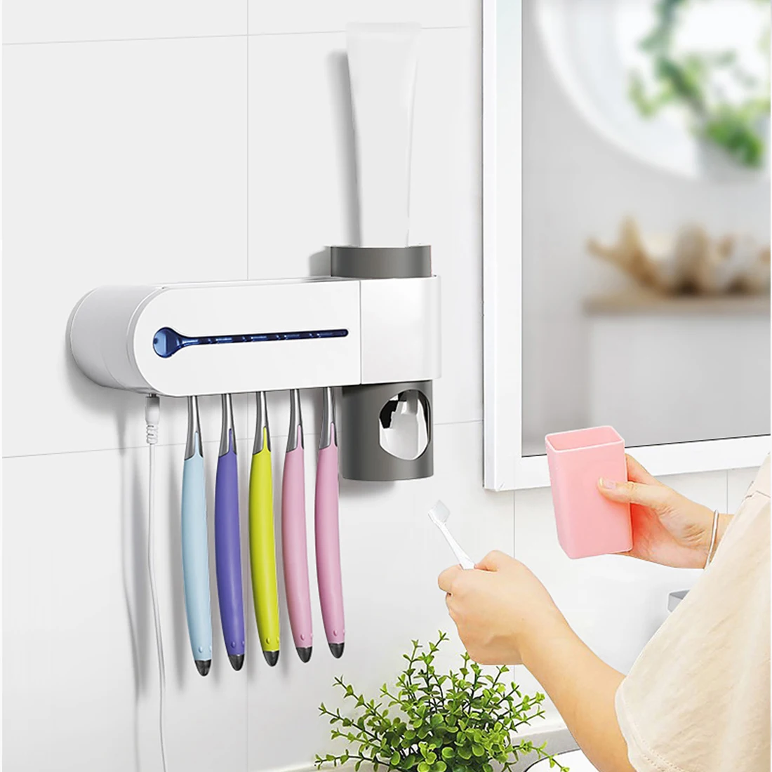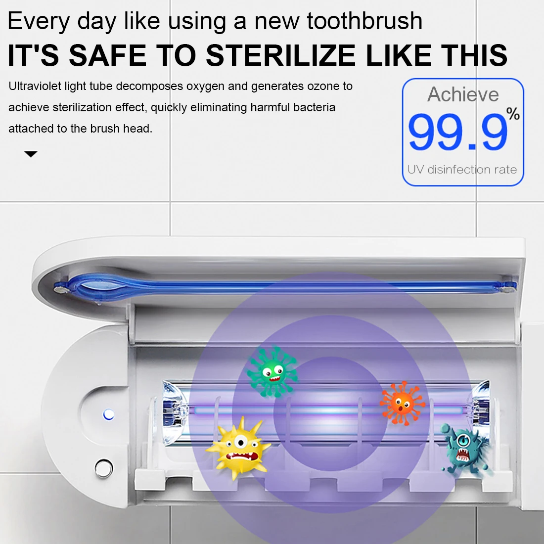 1.УФ-держатель для зубной щетки: УФ-стерилизатор может убить 99.9% бактерий, он прошел проверку и сертификацию. Это свежая и зубная щетка для чистки каждый раз, когда вы используете его.