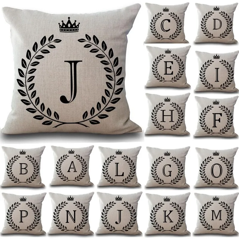 26 Подушка с надписью, черный и белый чехол с английским алфавитом, подушка, чехол, украшение для дома, диванная декоративная подушка, чехол