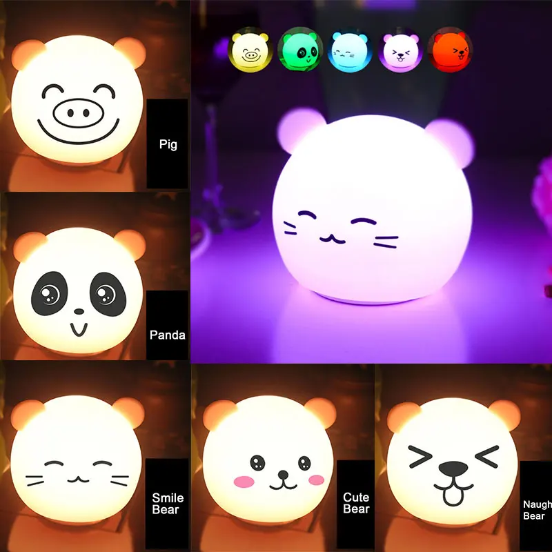 Стильная футболка с изображением персонажей видеоигр светильник с пандой и Свинкой с животным принтом медвежонка, светильник детские, для малышей светодиодный ночник мягкий силиконовый детский спальный лампы для украшения в спальнюUSD 19,44/Шт/Лот 1