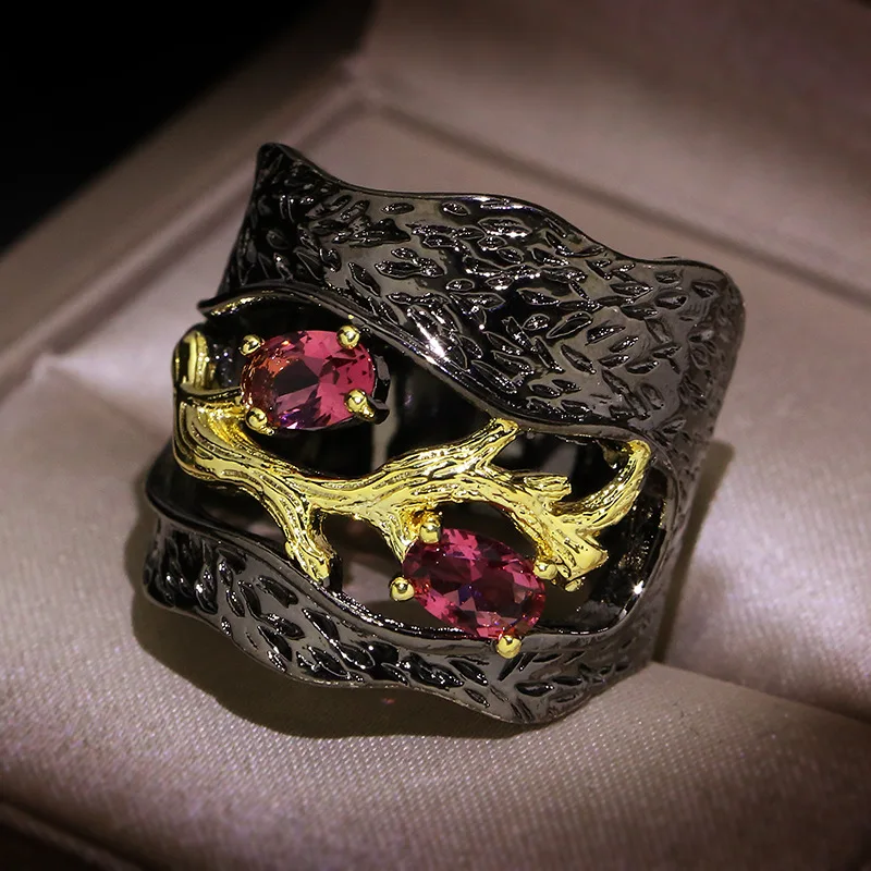 Модное золотое дерево кольцо «ветка» вечерние стимпанк Ретро двухцветные вольфрамовые циркониевые кольца для мужчин и женщин массивные ювелирные изделия