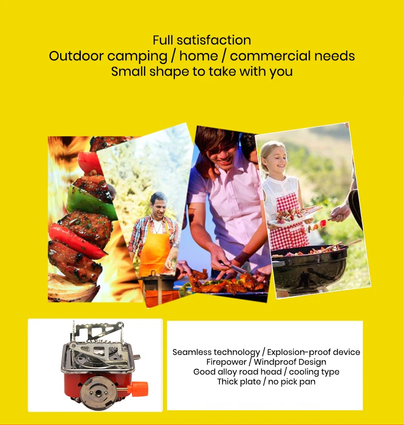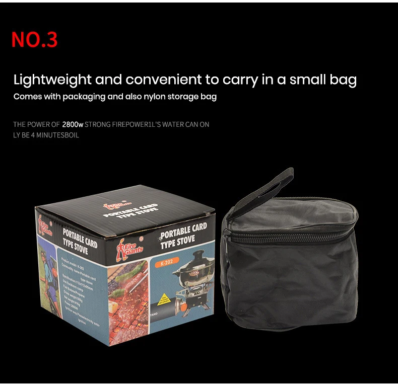 This product does not contain a gas tank [Recommended reason]: Don't look at the exquisite stove, strong firepower, 1L water can be boiled in 3-5 minutes! Folded but only the size of a palm, it is really good equipment for outdoor! [Product Name] Camping Gas Stove [Size] 160 * 160 * 95MM (the largest size when opened), the pan can be placed stably [Weight] about 450g [Air consumption] about 90g / hr [Power] 4000BTU, strong firepower, 1L water can be boiled in only 3-5 minutes! [Gas] Butane gas [Packing size] 115 * 115 * 95MM advantage: 1. Convenient to carry: The feet and the bracket can be retracted, and packed in a black nylon bag; the package size is only 11.5 * 11.5 * 9.5CM 2. Easy to use: Connect the gas tank, open the gas valve, press the igniter, and electronic ignition; adjust the gas valve to rotate counterclockwise to increase the gas and decrease clockwise. 3. Complete functions: 4000BTU power, large fire head, can be fried, fried, fried, roasted, cooked, stewed everything.