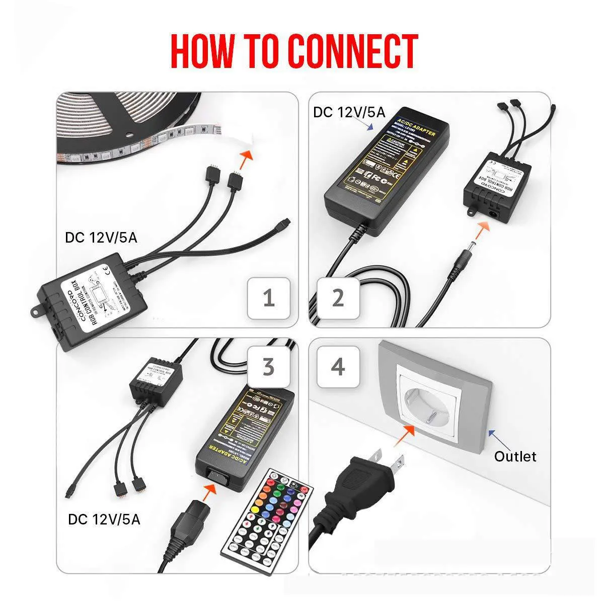 Светодиодная лента постоянного тока 12 В Гибкая Диодная лента SMD 5050 RGB 44Key водонепроницаемый пульт дистанционного управления 5 м 10 м освещение