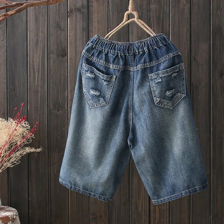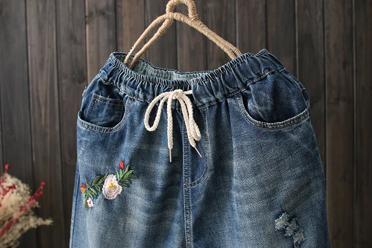 Винтажные женские джинсы с цветочной вышивкой, женские джинсовые шорты с высокой талией, синие женские летние женские джинсы