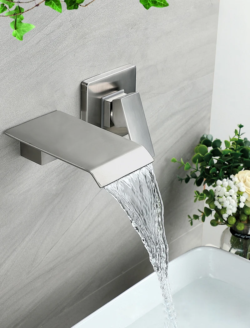 Смеситель для раковины с водопадом, настенный черный матовый кран с одной ручкой, настенный кран для раковины, 2 отверстия, кран для горячей и холодной воды, Torneira