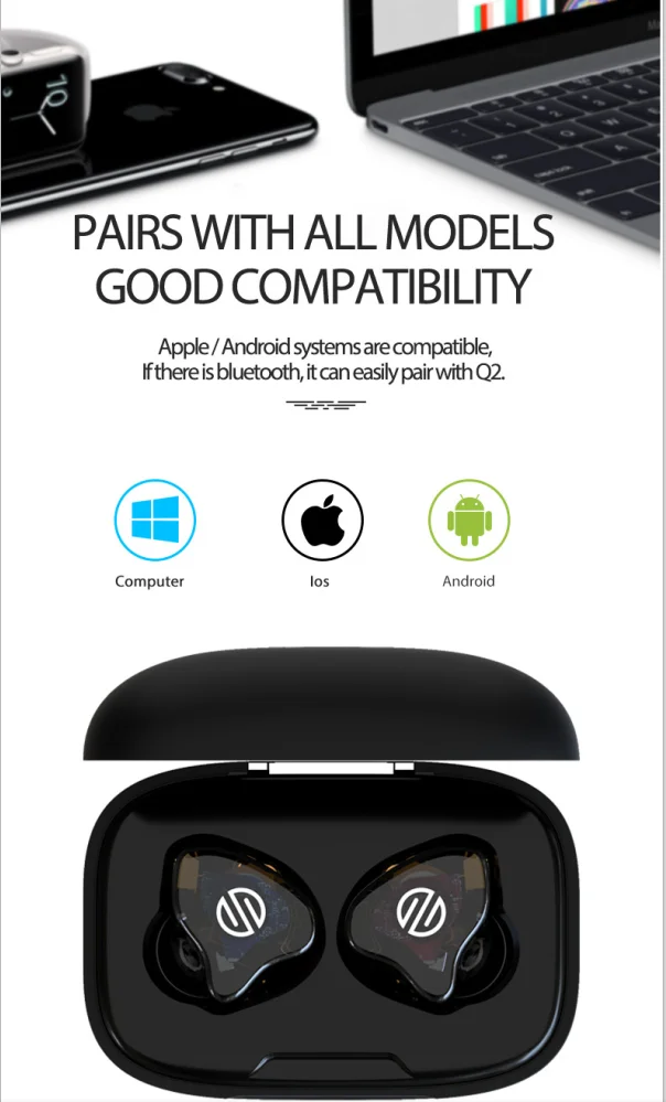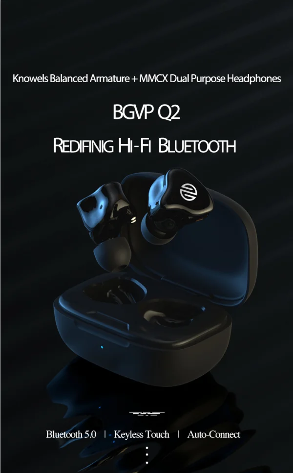 Модель продукта: BGVP Q2 Сопротивление: 18 Ом Чувствительность: 106 дБ Частотный диапазон отклика: 20 Гц-35 кГц Способ подключения: Bluetooth 5,0 + выход MMCX Тип подключения: беспроводной + проводной Способ ношения: true wireless / wired in-ear Аудиоинтерфейс: 3,5 мм Метод зарядки: Type-c Особенности: 1.MMCX сменный линейный дизайн 2. Двойное действие железа + MMCX двойного назначения гарнитура 3.Bluetooth 5,0/беспроводной сенсорный/автоматическое подключение 4. Мощный и совместимый, HD передача 5. Естественный низкочастотный и высокочастотный баланс