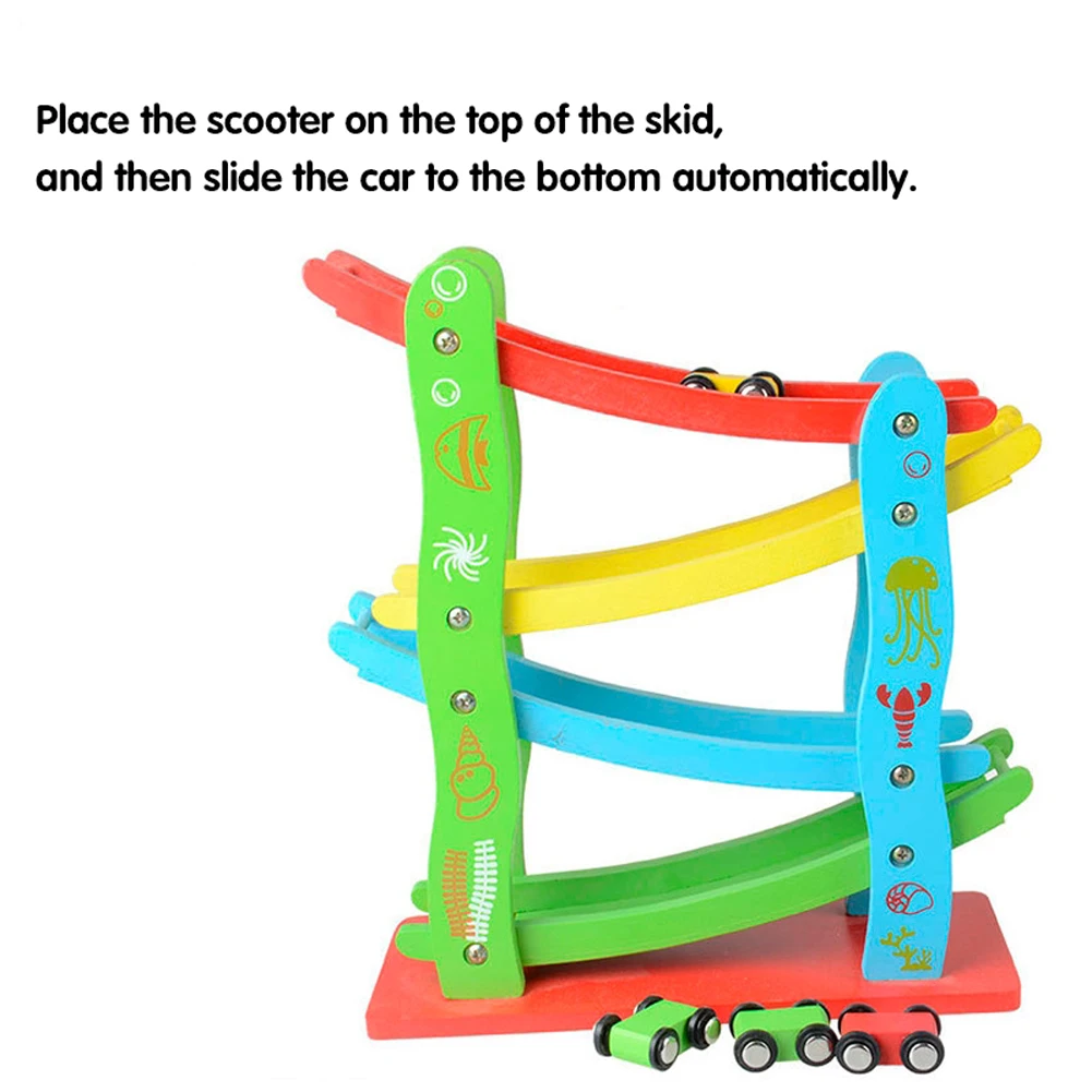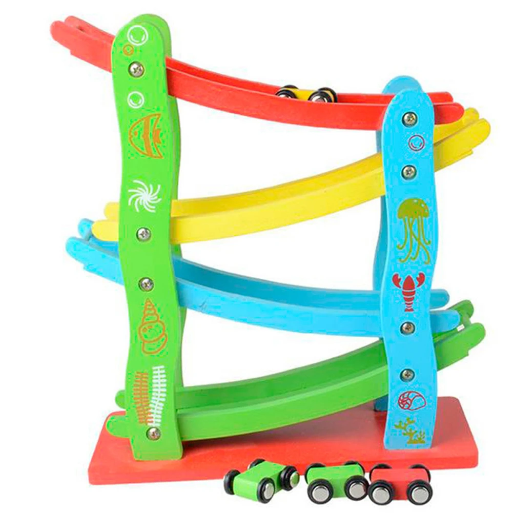 Деревянная гоночная дорожка, деревянная лестница, скользящий автомобиль, деревянный слот, трек, автомобиль, игрушки, обучающая модель, игрушка-горка для детей, подарки для детей