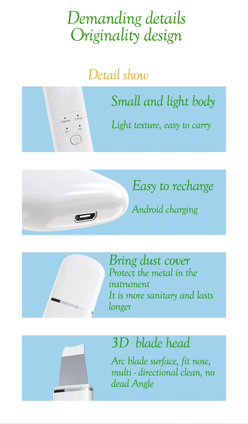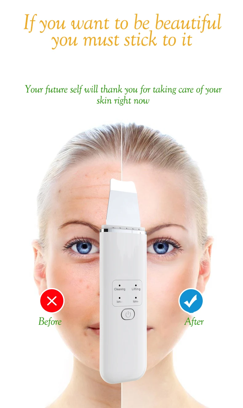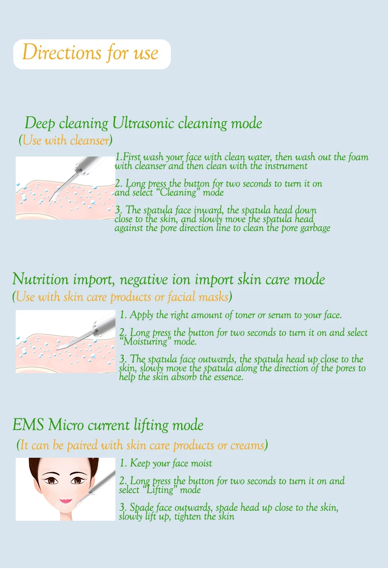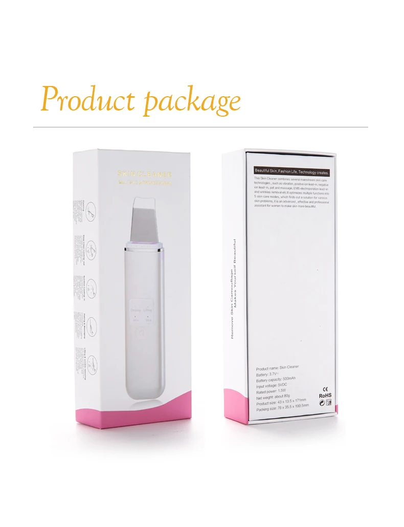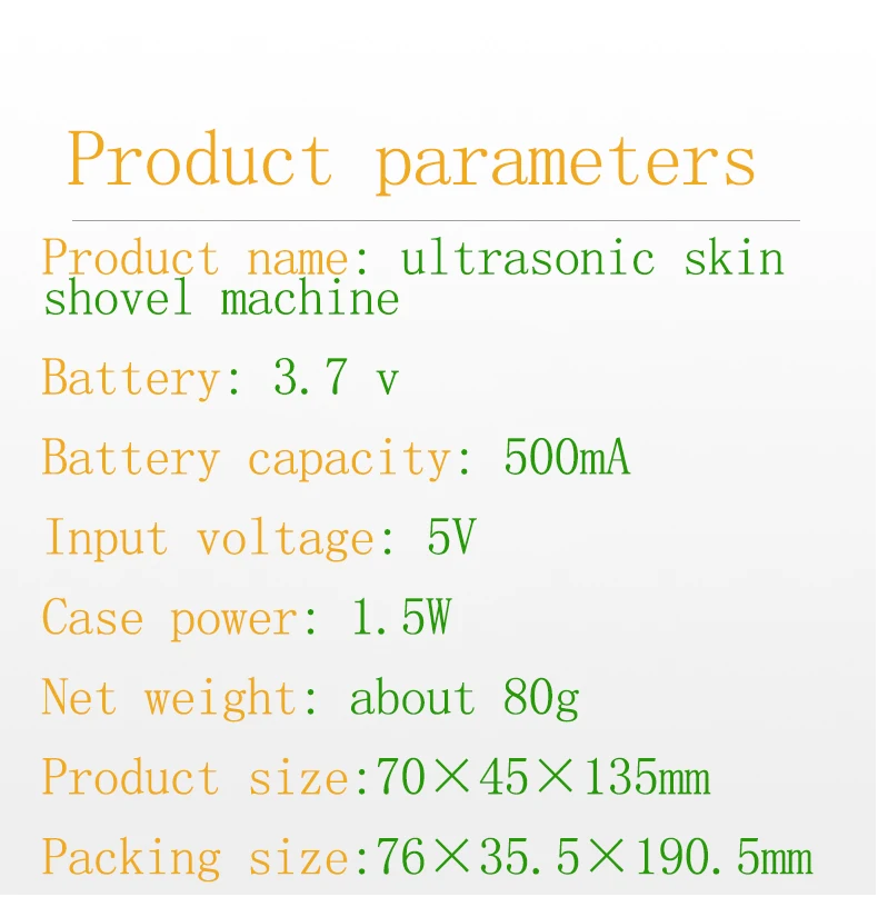 Мы предлагаем ускоренную доставку службой доставки в Испании и Польши. Это доставит Вам товары в течение 3-5 дней, чтобы доставить товар. Мы предлагаем прямую поставку (Дропшип), CSV и индивидуальные заказы. Мы можем поставить оптом дропшиппинг заказы через CSV файлы в формате Excel или файлы. Нет обещанного или этикетку на упаковке. Для того, чтобы купить больше информацию о других товарах или оставьте 5-звездочный отзыв, чтобы купить mystery подарки, то, пожалуйста, не стесняйтесь связаться с нами. Вы можете получить больше скидок, следуя в магазин. Если у Вас возникли какие-либо вопросы, пожалуйста, не стесняйтесь обращаться к нам Основные функции: 1. Ультразвуковая чистка. Ультразвуковая чистка погружные насосы для глубоких поры в поры. 2. Положительные ионы привести к грязи, отрицательные ионы могут быть внесены в питания. 3. EMS микро-ток стимуляции, омоложения кожи. Описание: Название продукта: ультразвуковая микродермабразия Напряжение: 5 В постоянного тока Емкость батареи: 500 мАч Номинальная мощность: 1,5 W Материал изделия: АБС-пластик Размер продукта: 43x15x172mm Вес нетто: 86 г Время непрерывного использования: 60 минут Время зарядки: 2 часа Содержимое упаковки: 1 x FoLLoo ультразвуковой ионный инструмент для очищения 1 х USB type-C кабель для зарядки 1 x Руководство пользователя на английском и китайском языках Советы по применению: 4 режима, многофункциональный очищения кожи Литий-ионный + экспортная Ионно-импорт Ультразвуковая технология Микротоков EMS Шаг 1: очищение Ультразвуковой очищающий режим (для использования с очищающее средство для лица/умывания лица) 1. Смочите лицо теплой водой и используйте очищающее средство для лица/Уход за кожей лица, чтобы сделать пены. 2. Нажмите кнопку длинные кнопку, чтобы включить питание, по умолчанию является пилинг режим. 3. Держите энергию под своим контролем Лопата лицевой стороной внутрь, лопата для снега головой вниз и близко к коже. Переместите лопаты медленно против направления поры 3 минуты. Шаг 2: глубокое очищение Положительный ион режим экспорта (литий-ионный + ) (для использования с тонер/лосьон) 1. Нанесите необходимое тонер/лосьон для того, чтобы ваше лицо. 2. Нажмите кнопку короткие кнопку, чтобы выбрать литий-ионный + режим. Держите Лопата лицевой стороной внутрь, лопата для снега головой вверх и близко к коже. Переместите лопаты медленно против направления поры, чтобы глубоко очистить вашу кожу в течение 3 минут, затем смойте ваше лицо теплой водой. Шаг 3: Питание введение Отрицательных ионов введение режим (ионно- ) (для использования с эссенцией/эмульсия/маски) 1. Нанесите необходимое концентрат/эмульсия для того, чтобы ваше лицо. 2. Если вам нравится ионно-режим. 3. Держите энергию под своим контролем Лопата уход за кожей лица наружу, лопата для снега головой вверх и близко к коже. Переместите лопаты медленно следите за направлением поры для массажа на 3 минуты. Ультразвуковых технологий гарантируют, что обеспечивает глубокое очищение кожи Ультразвуковую вибрацию 24000 Гц в секунду: Вода распылитель ультразвуковой вибрации и поры и грязь, встряхивается на "мелкие частицы" без ущерба для кожи Литий-ионный + экспортная Мягко отшелушивает, глубоко земснаряд поры, делает кожу чистой и тщательное Ионно-импорт Сделать продукты по уходу за кожей проникают глубоко в кожу и их эффективно Микротоков EMS массаж С пом