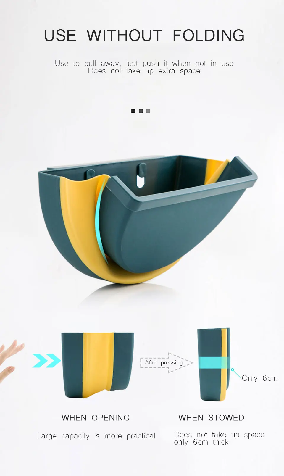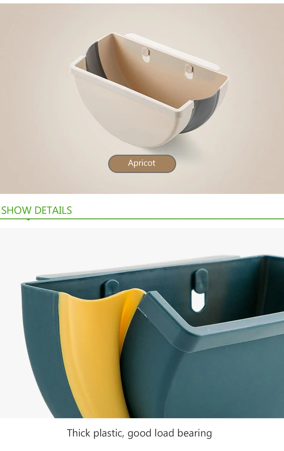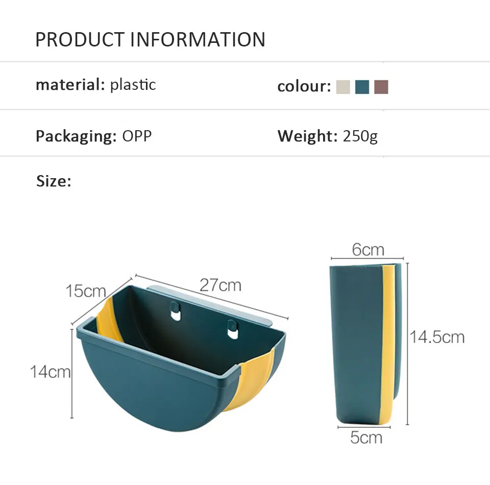 Особенности: 1. Подвесной шкаф мусорный бак: мусор можно повесить на кухонную дверь, дверь шкафа, дверь кладовой, ящик, автомобиль или где-то еще. Толщина двери должно быть меньше, чем 2,2 см. 2. Уникальное складное мусорное ведро: кухонное складное мусорное ведро не будет занимать драгоценное пространство на кухне. Если вы не используете его, вы можете сложить его и открыть его при использовании. 3. Только правильный размер мусорного ящика шкафа, он изготовлен из высококачественного пластика и эластичной резины, нетоксичный и безвкусный, прочный и прочный. Вы можете использовать нашу подвесная корзина для мусора в течение длительного времени. 4. Необходимо иметь для кухни: легко установить, Просто прикрепите компактный складной мусорный бак к любым ящикам или дверям шкафа. При приготовлении свежих продуктов, нарезки и нарезки, вам не нужно постоянно открывать и закрывать дверцу шкафа влажными руками, по сравнению с мусорным ведром под раковиной. 5. Широкое применение: есть фиксированный кронштейн в нижней части мусорного бака, вы также можете положить его на землю, если вы хотите. Широко используется в кухнях, студенческих общежитиях, жилых комнатах, спальнях, автомобилях, офисе и т. д. Технические характеристики: Наименование: кухонный складной мусорный бак Материал: пластик Цвет: как показано на фотографии Размер: как показано на фотографии