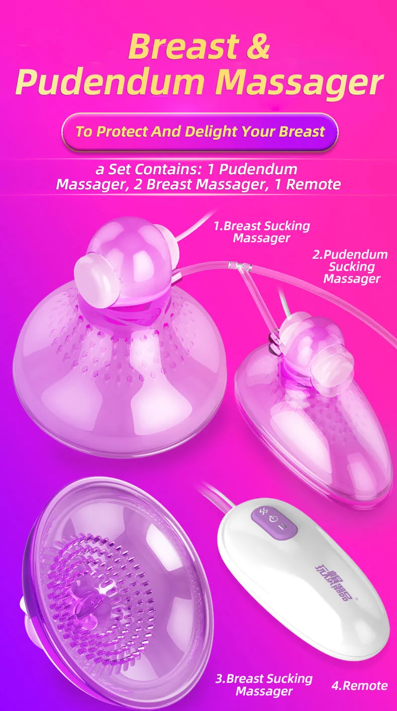 Этот массажер для груди включает в себя: 1 массажер для клитора, 2 массажера для груди, 1 пульт дистанционного управления и 2 вибрирующих яйца