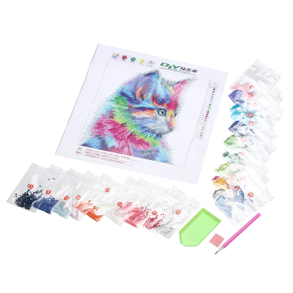 1 X цветная картина с котом и бриллиантом (стразы должны быть наклеены)