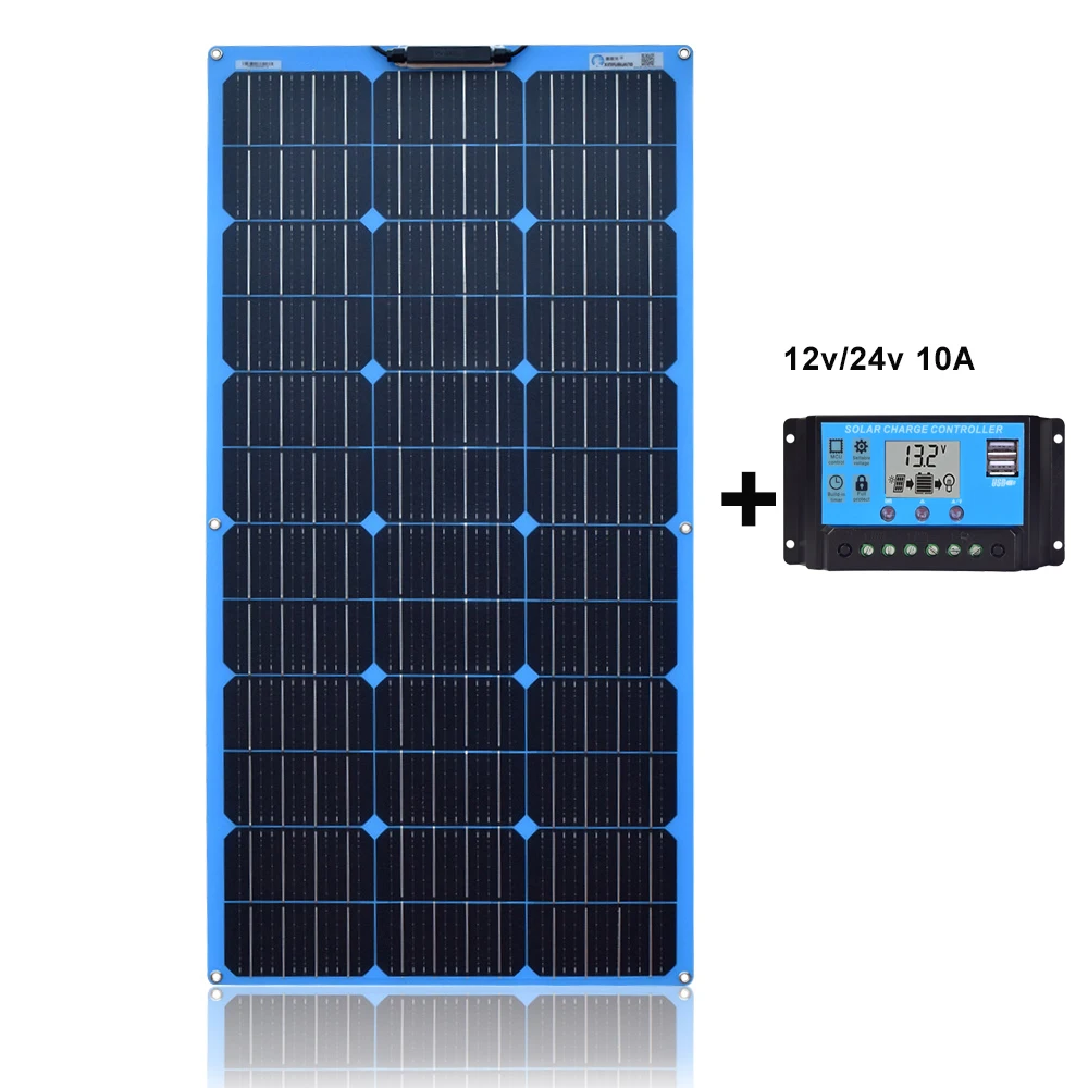 (A) панель: 1 * Гибкая солнечная панель (B) набор панелей: 1 * Гибкая солнечная панель 1 * 10A контроллер 1 * набор кабелей с зажимом типа «крокодил» 1 * набор кабельных разъемов PV