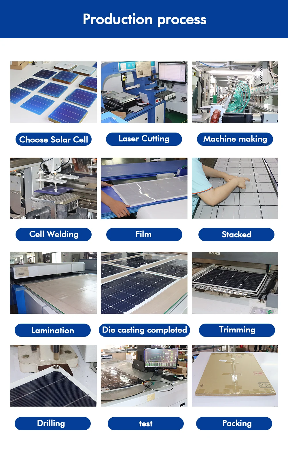 Максимальная мощность (Pmax) 100 Вт Допуск на выход ± 3% Напряжение открытого замыкания (Voc) 21,6 в Ток короткого замыкания (Isc) 6,11 A Максимальное напряжение питания (Vmp) 18 в Максимальный ток питания (Imp) 5.55A Эффективность клеток 21% Рабочая температура (NOCT) 45 ± 2 ℃ Диапазон температур-20 ℃ ~ + 80 ℃ Количество ячеек 36 шт. Вес солнечной панели 1900 г Размер 1030*535*3 мм Цвет белый, черный, синий Солнечная батарея 161*161 мм многолинейный монокристаллический кремний Стандартные условия испытаний: lrradiance 1000 Вт/м ^ 2, температура 25 ℃, AM = 1,5