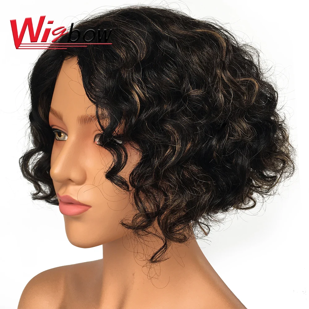Парики из кружевной части, лучшие парики из человеческих волос, кудрявые парики, короткие волосы, предварительно выщипанные настоящие волосы, парики для женщин, Омбре, перуанские парики, короткие человеческие волосы для Боба, Wigbow