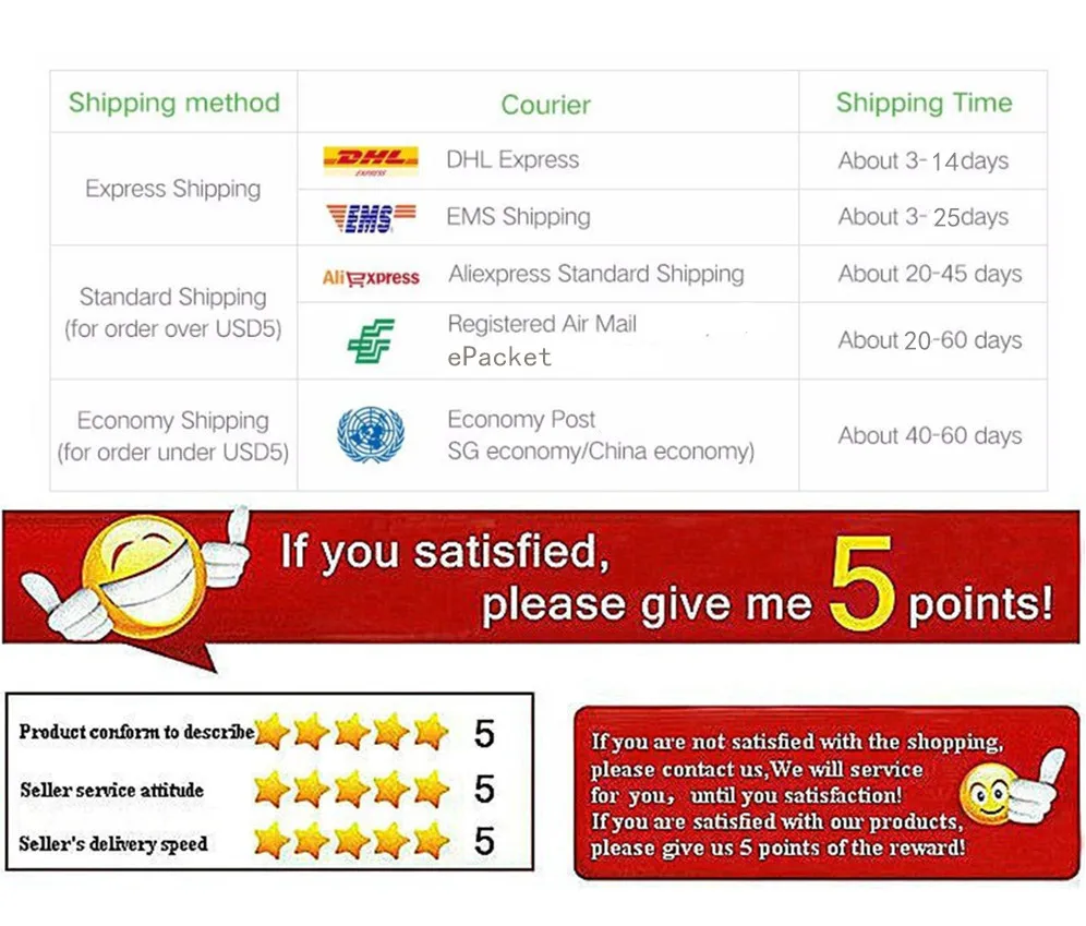 Доставка:Все товары будут отправлены в течение 1-3 рабочих дней после оплаты. Все товары будут отправлены с номером отслеживания.
