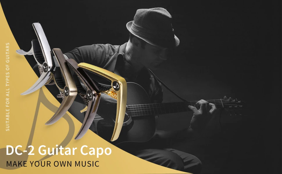 Donner DC-2 Capo для действительно быстрых изменений на сцене. Легко наносится и регулируется одной рукой, он подпружиненный дизайн поровну находится дома в гитар, и может быть удобно припаркован на подголовнике, когда он не используется. Простой и простой в использовании, гитара остается в гармонии с большой интонацией.