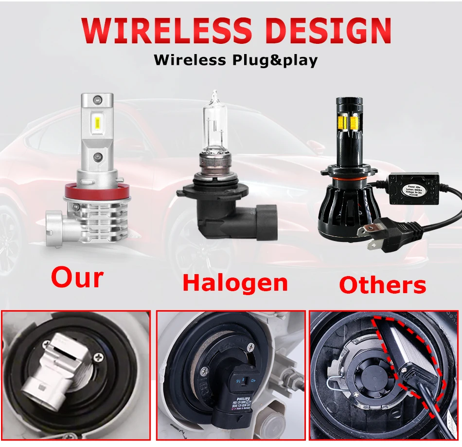 2 шт. HLXG автомобильная лампа светодиодная фара мини размер H11 Новое поступление 4300 К теплая белая мощность 50 Вт DC 12 В автомобильные аксессуары корейские чипы CSP • Вход (A): 3.0A ± 0.2A • Светодиодный чип: с чипами CSP в Корее • Срок службы: >30000 часов • Угол луча: 360 градусов, без слепых • Рабочее напряжение: 9-16 В постоянного тока • Рабочая температура: -40 °C ~ + 85 °C • Теория рассеивания тепла: авиационный алюминий 6063 • Розетка H11 Безвентиляторный дизайн, имеет более длительный срок службы, чем вентилятор охлаждения