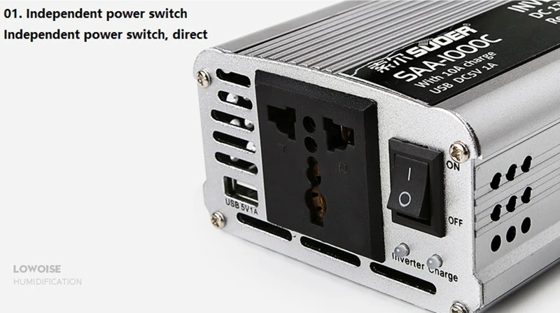 1. Инвертор 220V 230V имеет широкий спектр применения, и зарядка интегрирован, которая удобна в использовании. 2. Высокопроизводительный охлаждающий вентилятор снижает внутреннюю температуру и более долговечен. Охлаждающая Защитная машина вентилятора при запуске инвертора вентилятор автоматически вращается, уменьшая внутреннюю температуру машины и увеличивая срок службы. Советы: SUA-2000C-это умный вентилятор с регулируемой температурой. Когда внутренняя температура инвертора достигает 45 градусов, он автоматически включается. Когда температура снижена, она останавливается автоматически, и ночь очень комфортная. 3. Корпус из магниевого сплава корпус из магниево-алюминиевого сплава устойчив к коррозии, что рассеивает тепло инвертора и увеличивает срок службы. 4. Широко используется Многоцелевая машина, легко получить, сочетаются с различными бытовыми приборами. 5. Выход USB поддерживает различные цифровые продукты 6. Независимый выключатель питания независимый выключатель питания непосредственно контролирует работу инвертора. 7. Многофункциональная розетка Выходная розетка совместима с плоской вилкой на рынке. 8. Винтовая клемма крышка проводки может быть разделена, и положительные и отрицательные знаки ясны, что удобно для замены соединительной линии.