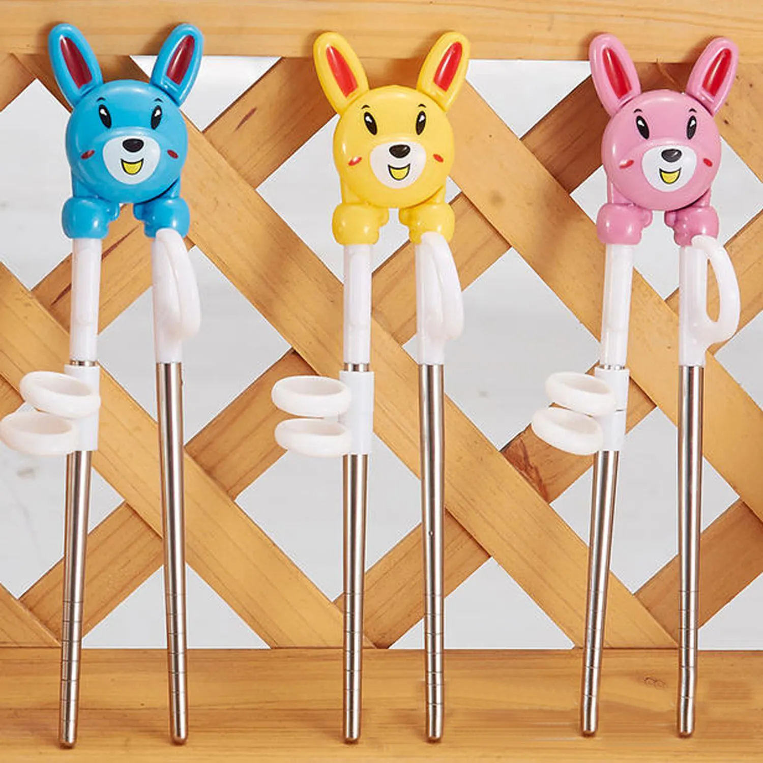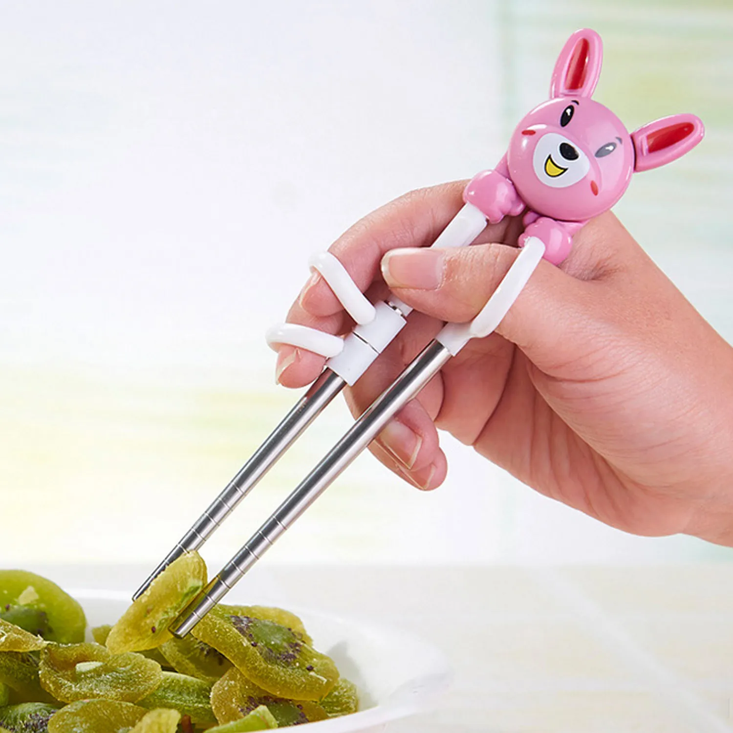 1 пара милые Мультяшные кролик из нержавеющей стали учебные палочки помощник для маленьких детей начинающих