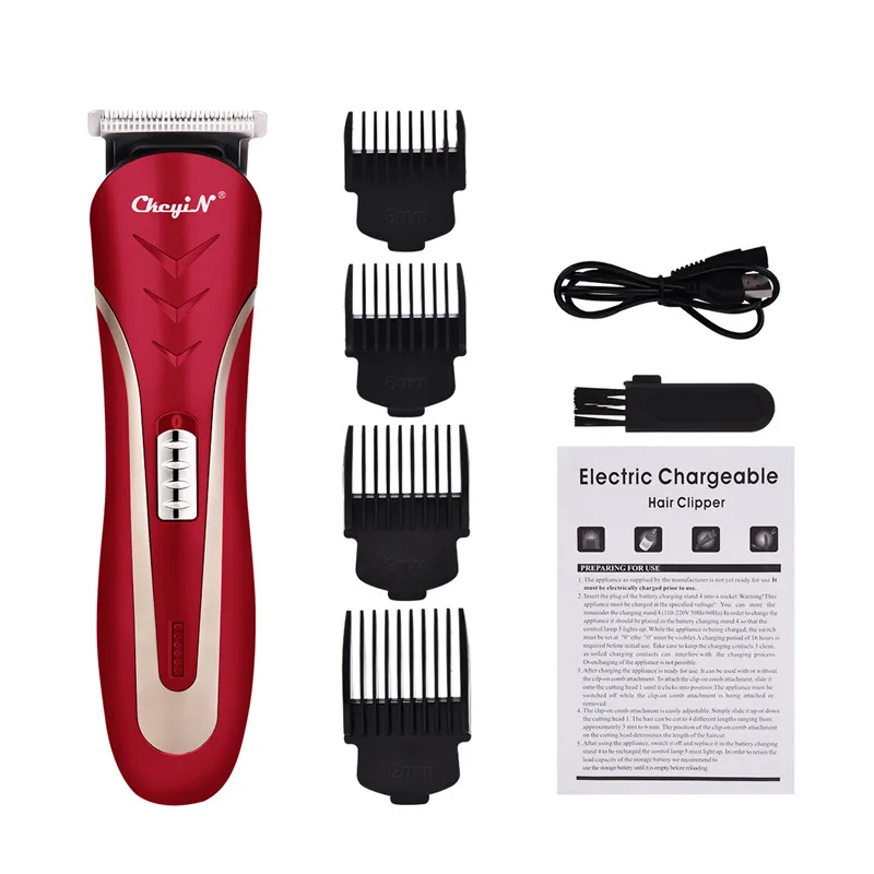 1 х машинка для стрижки волос 1 x USB кабель 4 x концевые расчески (3 мм, 6 мм, 9 мм, 12 мм) Щеточка для чистки-1 шт.; 1 x Руководство пользователя (английский/Арабский)