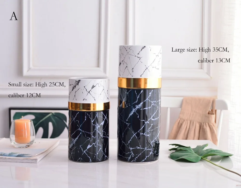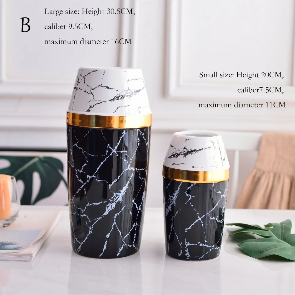 Название: белая и черная мраморная золотистая глазурованная керамическая ваза