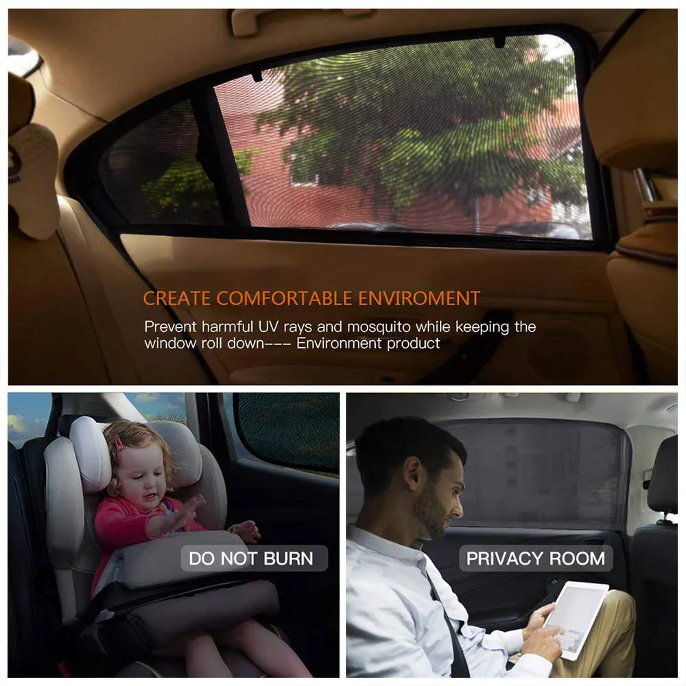 Оттенок бокового окна изготовлен из гибкого, эластичного сетчатого материала, который помогает блокировать солнце, делая вашего ребенка более безопасным, а ваш автомобильный охладитель.