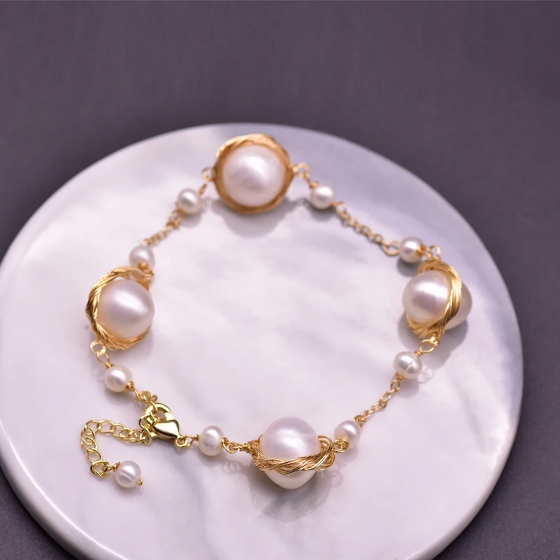 YYGEM 6 нитей натуральный белый картофель рис жемчуг заявление браслет Cz паве