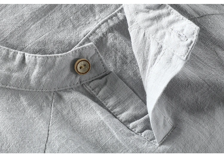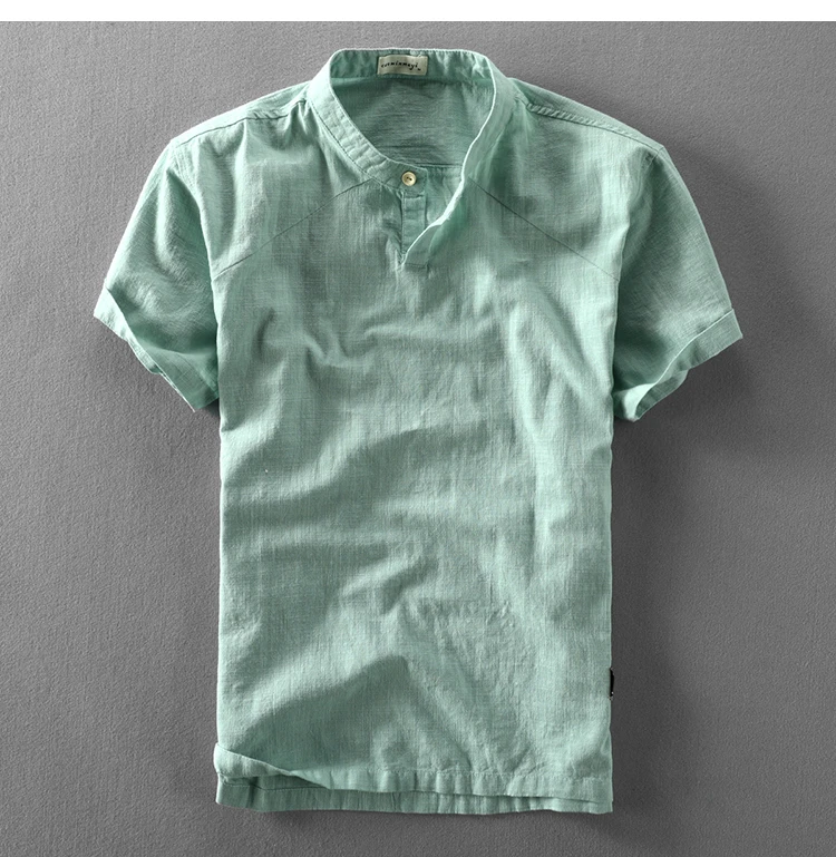 Мужская Летняя Модная брендовая простая хлопковая льняная рубашка в китайском стиле с коротким рукавом и стоячим воротником, мужская повседневная свободная Однотонная рубашка