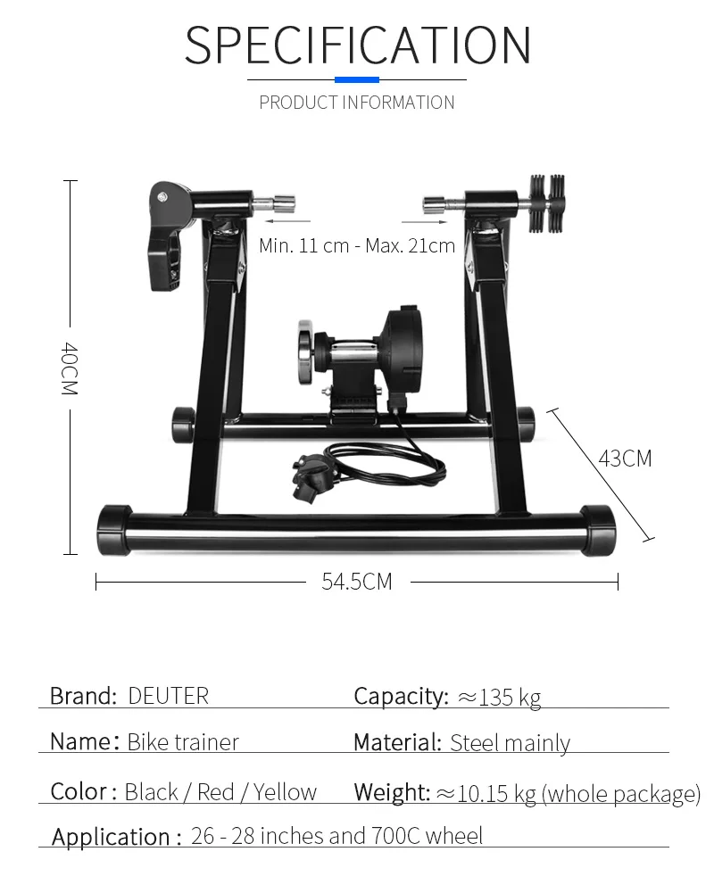 1. С разумной ценой для инструмента, также со всеми необходимыми функциями; 2. Создает фиксированное сопротивление с помощью магнитного маховика. Сопротивление может быть отрегулировано для имитации простых дорог, холмов или интервалов; 3. Относительно тихий, хороший выбор начального уровня; 4. Прочная и стабильная рама, легко хранить. 5. Работает для различных размеров колес и велосипедов, таких как дорога, горный велосипед.