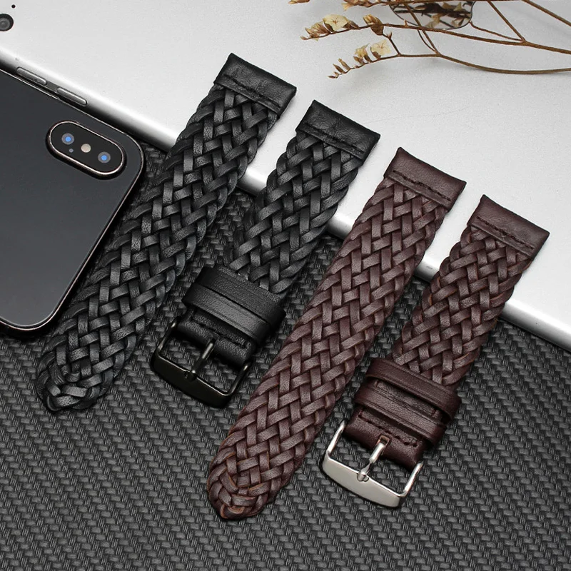 22 мм 20 мм роскошный тканый кожаный ремешок для Samsung Galaxy Watch Band 42 мм/46 мм/Active 2 1 40 мм 44 мм черный коричневый браслет