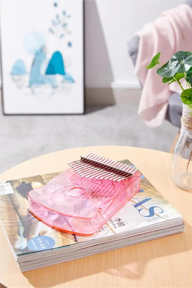 Item type: kalimba Material: ABS Range of sound: 17 keys Color: Transparent, pink Packing list: 1 * Kalimba 1 * Tuning Hammer 1 * Music Note Sticker 1 * Cleaning Cloth 1 * User Manual Note: Due to manual measurement, it may vary from 1 cm to 3 cm. Color deviation might exist due to different monitor settings and light, please kindly understand.