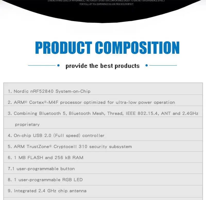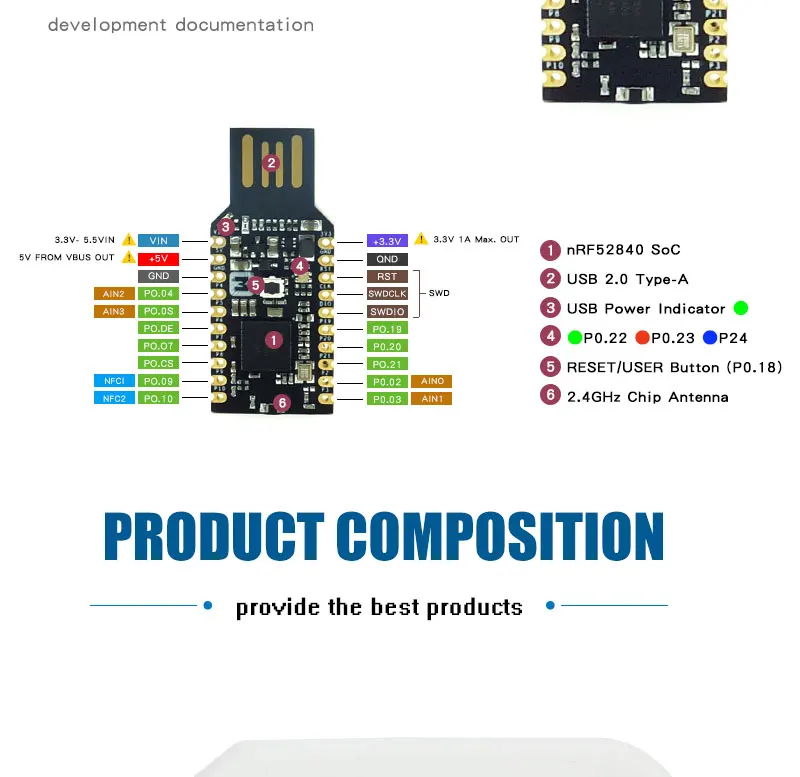 Низкая стоимость usb-ключ с поддержкой Bluetooth 5, Bluetooth, сетка, нить, Zigbee, IEEE 802.15.4, ANT и 2,4 ГГц Фирменная стеки Поставляется с usb-загрузчиком и прошивкой OpenThread NCP Программирование через nRF подключение для рабочего стола или nRFUtil Поддерживаемый Бордер OpenThread Нитевой сетевой анализатор с Wireshark Монитор топологии резьбы
