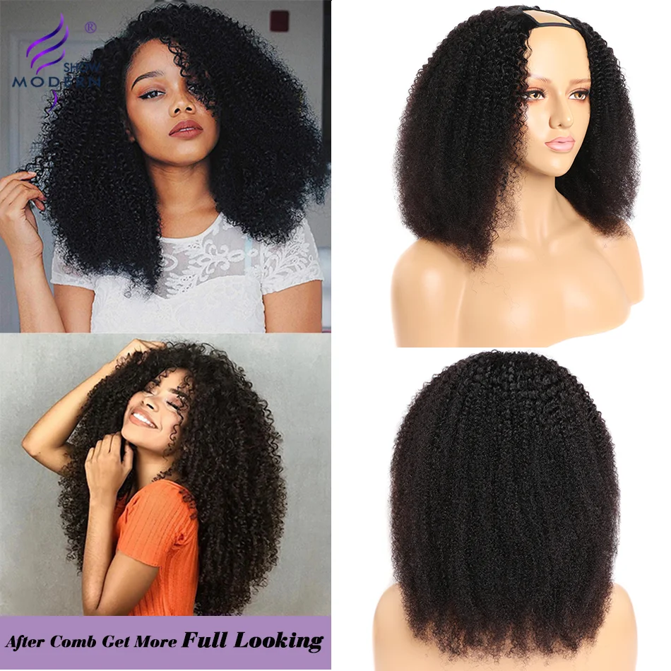 Современное шоу афро кудрявые u-образные человеческие волосы парики для черных женщин бразильские волосы Remy 150% плотность необработанные кудрявые волосы парик