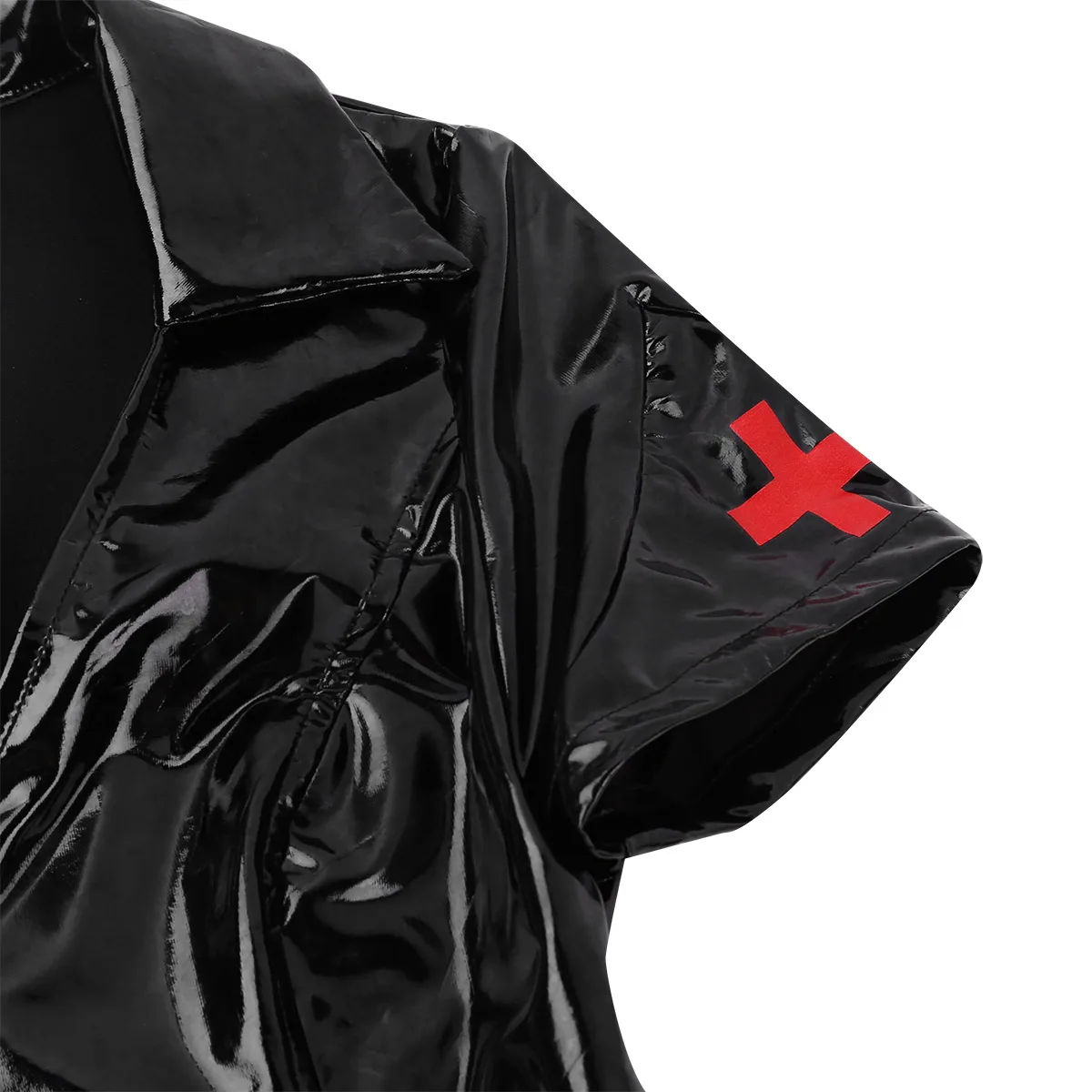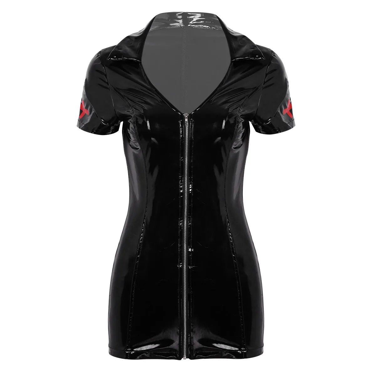 Эротическое платье Wetlook из лакированной кожи, женское вечернее Клубное платье, облегающее платье, женское модное короткое платье на молнии спереди