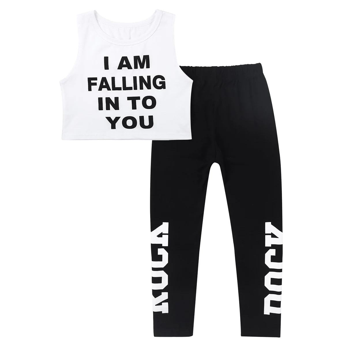 Одежда для танцев изготовлена из полиэстера и хлопка, ручная стирка. Таблица размеров означает возраст для девочек, но только для общего руководства. Укороченный топ без рукавов, круглый вырез, принт спереди с надписью «I AM FALLING TO YOU». Затяните на застежке. Подходящие леггинсы полной длины с широким эластичным поясом. Эластичная ткань, удобная и дышащая. Идеально подходит для джаза, уличного танца, выступления на сцене, танцевального класса, занятий спортом или повседневной носки.